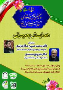 به مناسبت چهلمين سالگرد انقلاب اسلامي برگزار می گردد؛ «همايش تبيين دستاوردهاي چهل ساله نظام مقدس جمهوري اسلامي ايران» به گزارش روابط عمومی «همايش تبيين دستاوردهاي چهل ساله نظام مقدس جمهوري اسلامي ايران» روز پنجشنبه 1397/10/20 با سخنراني دكتر صفار هرندي و دكتر منوچهر محمدي از ساعت 9 الي12 در تالار موسسه برگزار مي گردد.