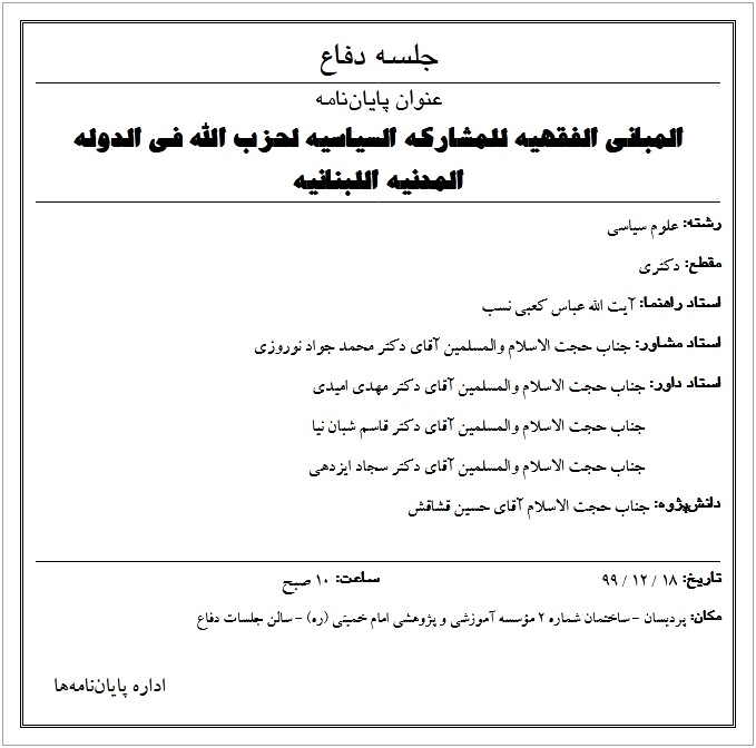 جلسه دفاع پايان‌نامه دانش‌پژهان مؤسسه آموزشي و پژوهشي امام خميني(ره)