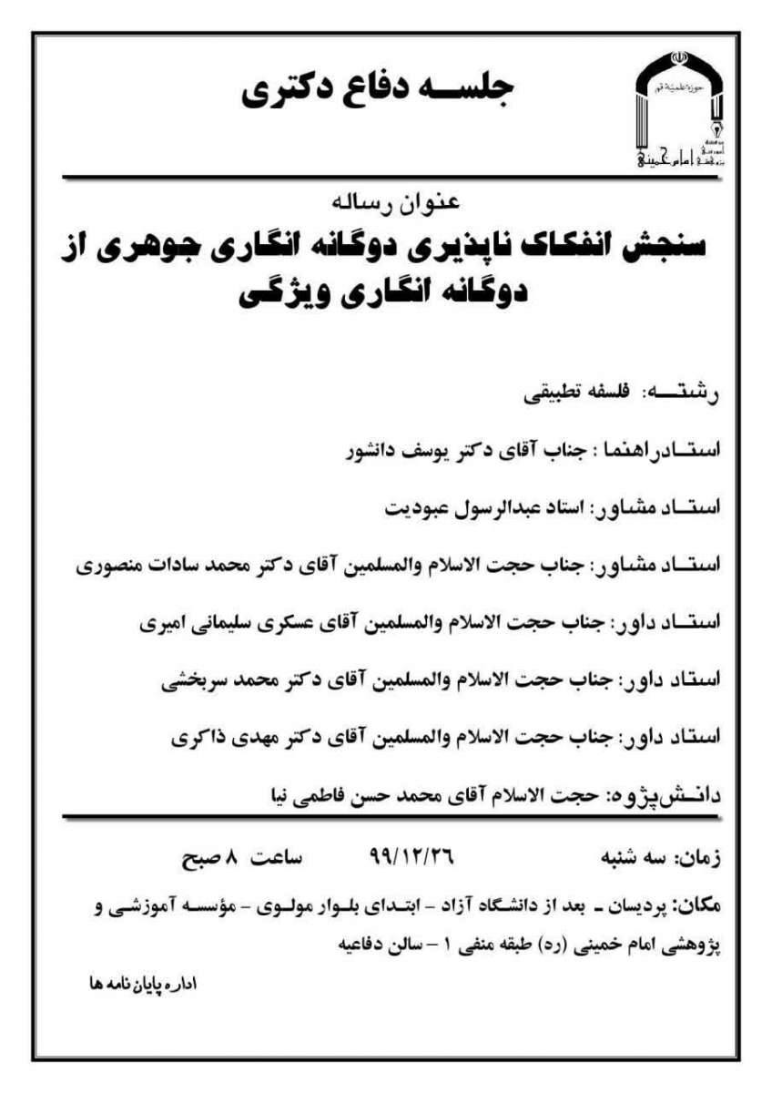 جلسه دفاع پایان‌نامه دانش‌پژوهان مؤسسه آموزشي و پژوهشي امام خميني(ره)