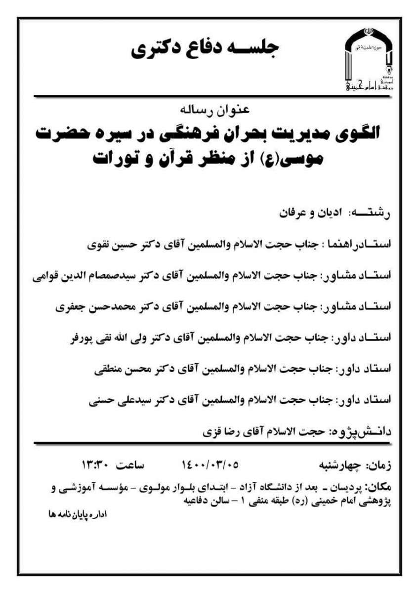 جلسه دفاع رساله دكتري دانش‌پژوهان مؤسسه آموزشی و پژوهشی امام خمینی(ره)