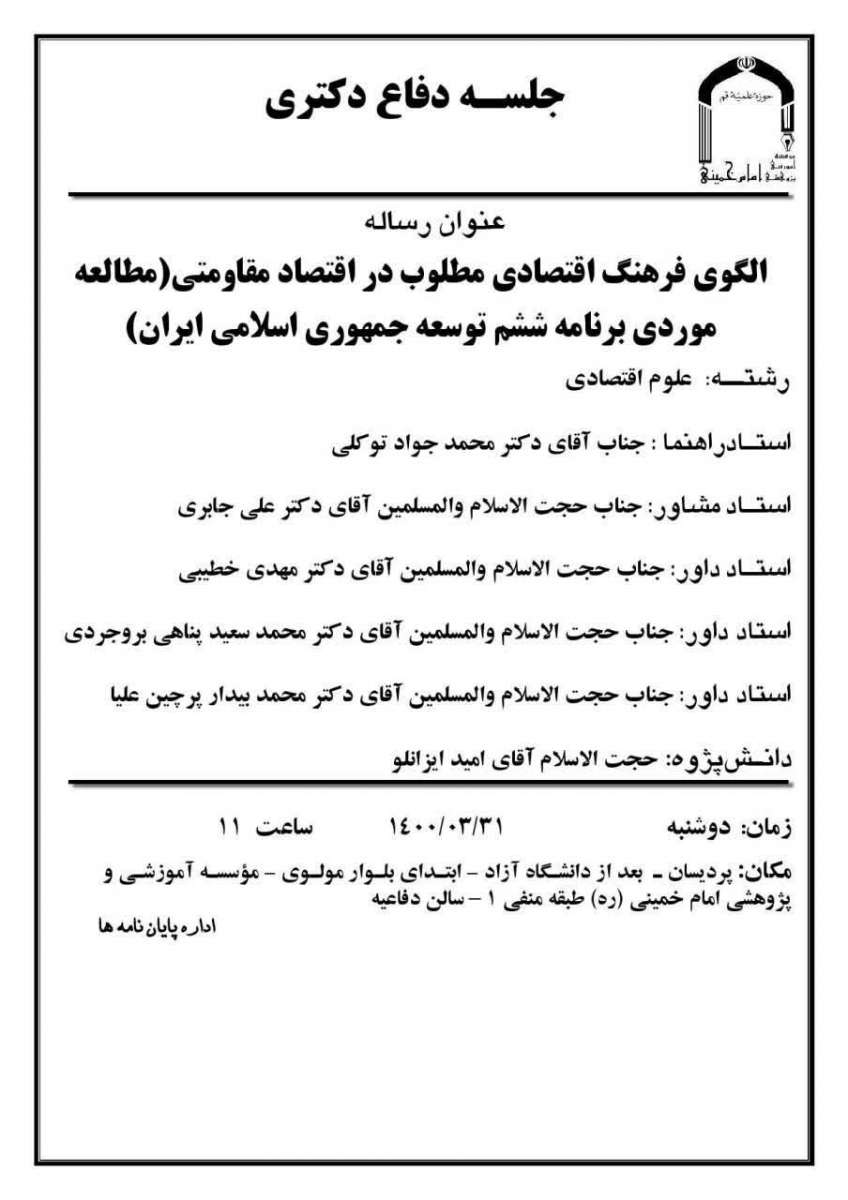 جلسه دفاع رساله دكتري دانش‌پژوهان مؤسسه آموزشی و پژوهشی امام خمینی(ره)