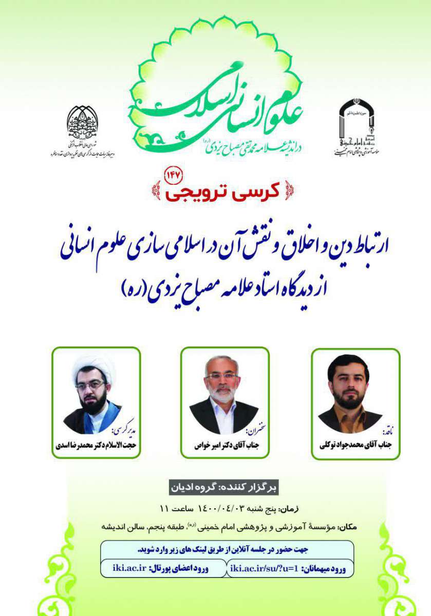 موضوع: ارتباط دین و اخلاق و نقش آن در اسلامیسازی علوم انسانی از دیدگاه استاد علامه مصباح یزدی(ره)