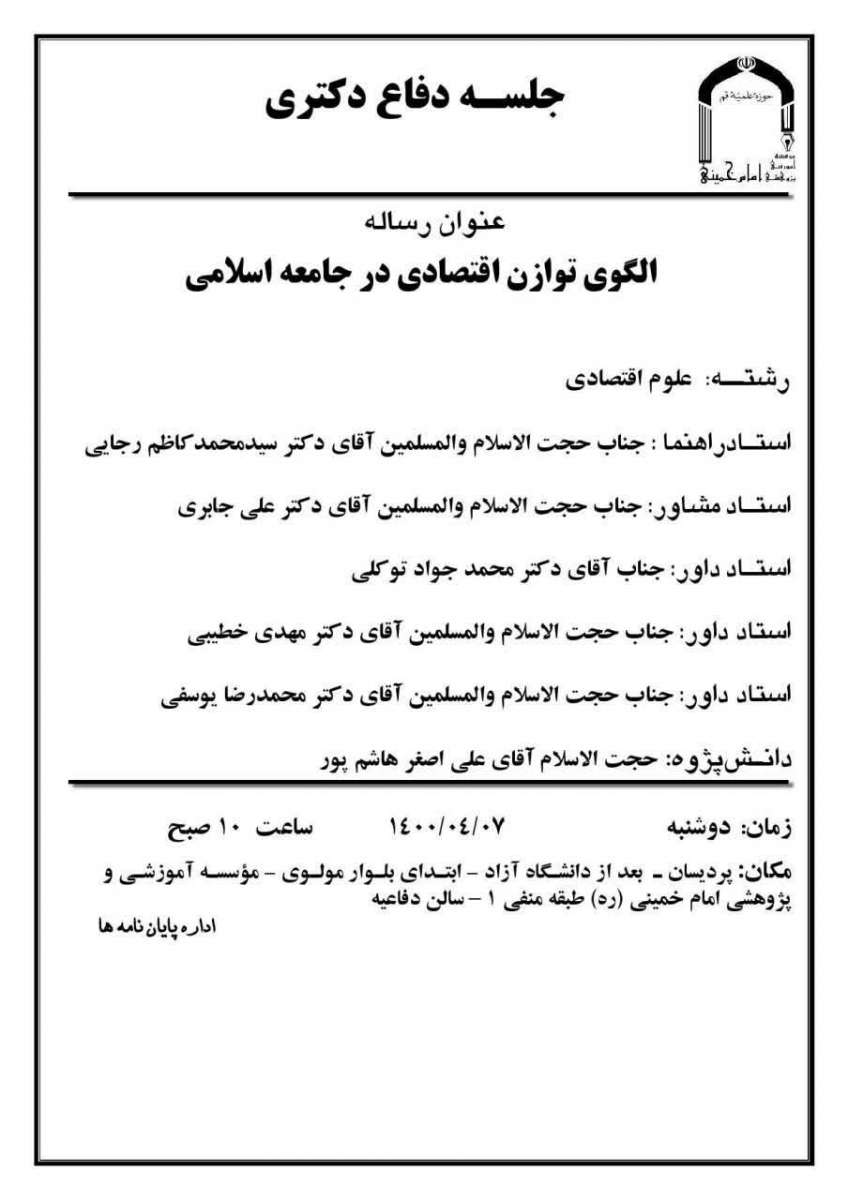 جلسه دفاع رساله دكتري دانش‌پژوهان مؤسسه آموزشی و پژوهشی امام خمینی(ره)