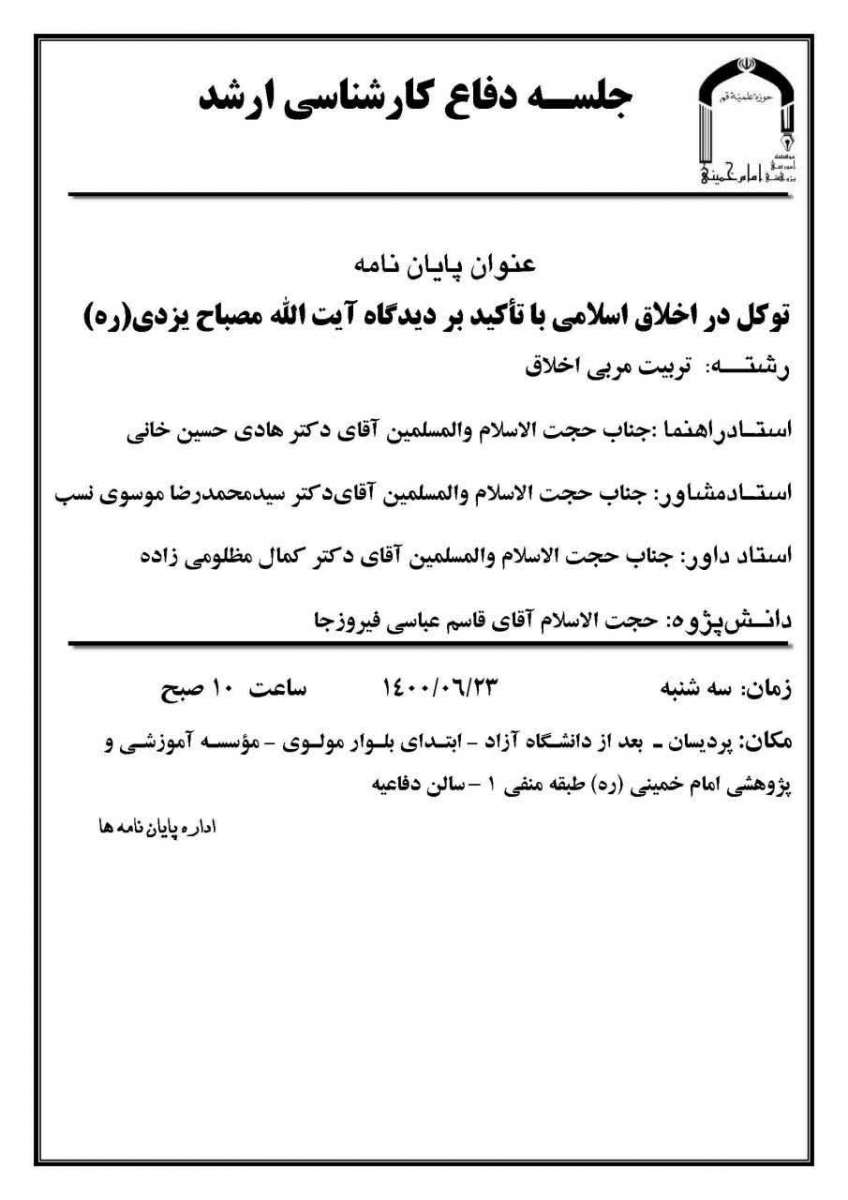 توکل در اخلاق اسلامی با تأکید بر دیدگاه آیت‌الله مصباح یزدی(ره)