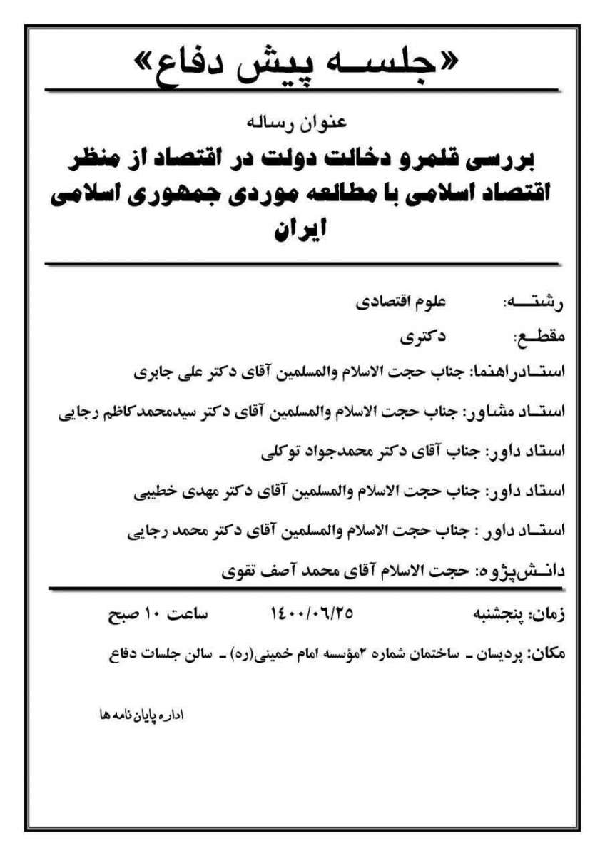 جلسه پیش‌دفاع رساله دكتری دانش‌پژوهان مؤسسه آموزشی و پژوهشی امام خمینی(ره)