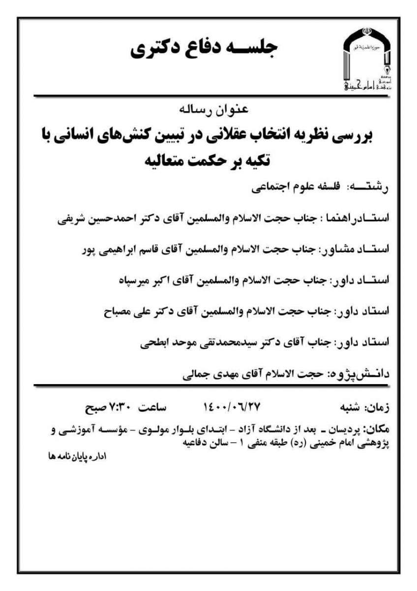 جلسه دفاع رساله دکتری دانش‌پژوهان مؤسسه آموزشی و پژوهشی امام خمینی(ره)