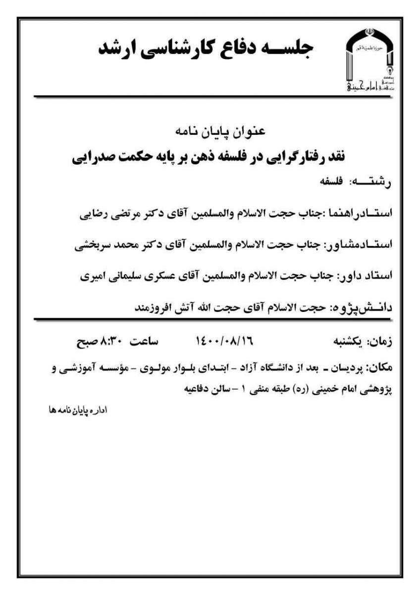 جلسه دفاع پایان‌نامه‌های دانش‌پژوهان مؤسسه آموزشی و پژوهشی امام خمینی(ره)