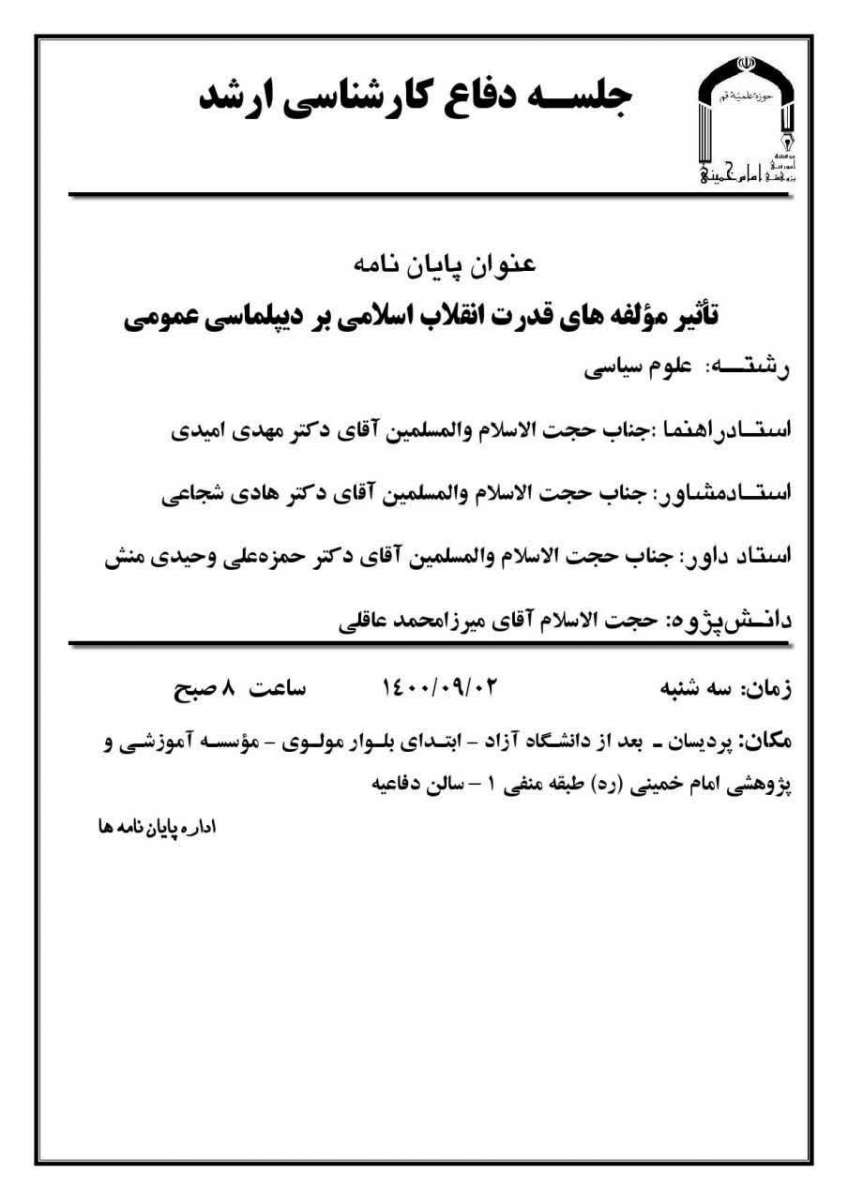 جلسه دفاع پایان‌نامه‌های دانش‌پژوهان مؤسسه آموزشی و پژوهشی امام خمینی(ره)