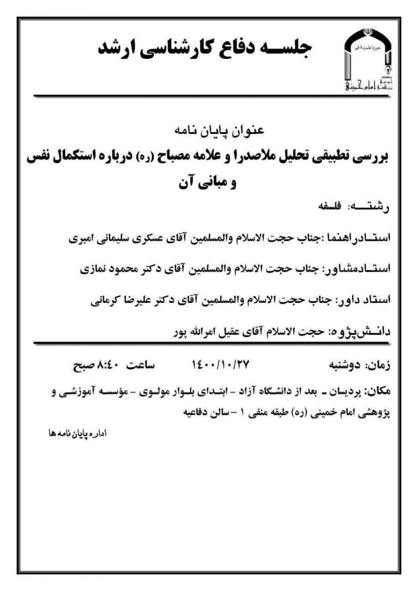 بررسی تطبیقی تحلیل ملاصدرا و علامه مصباح(ره) درباره استکمال نفس و مبانی آن