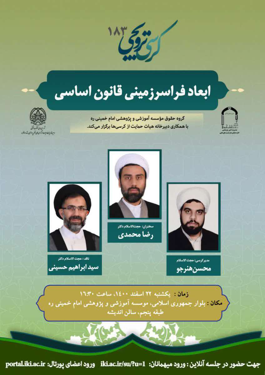 گروه علمی «حقوق» مؤسسه آموزشی و پژوهشی امام خمینی (ره) با همکاری دبیرخانه حمایت از کرسیها برگزار میکند