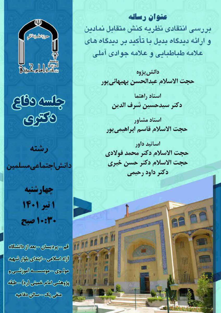 جلسه دفاع پایان‌نامه دانش‌پژوهان مؤسسه آموزشی و پژوهشی امام خمينی(ره)