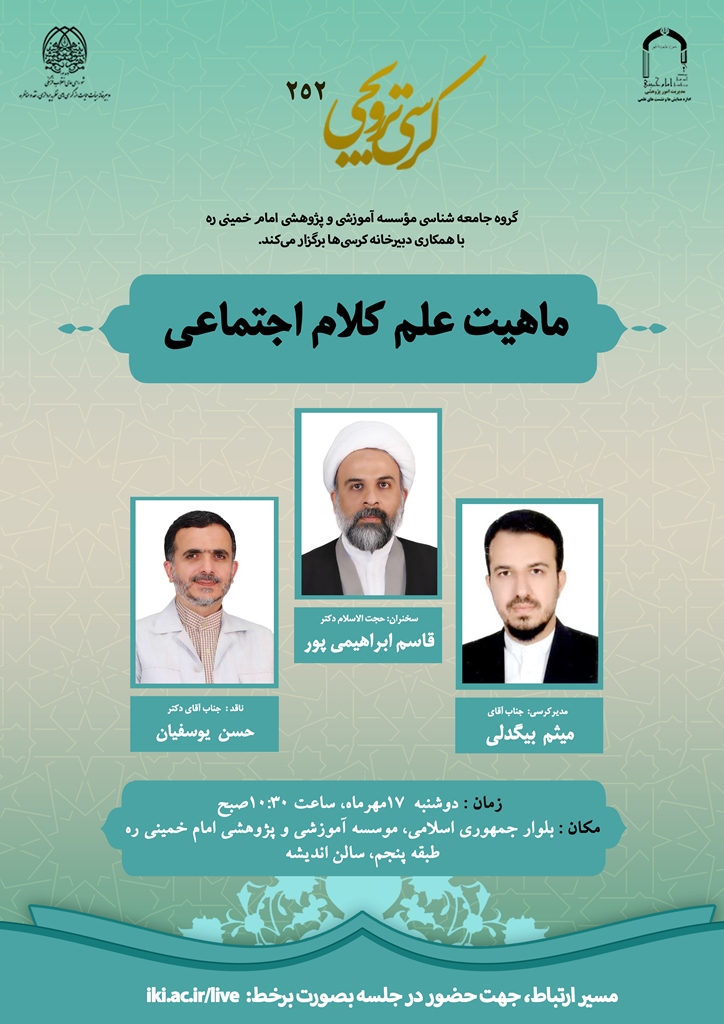 به گزارش روابط عمومی مؤسسه آموزشی و پژوهشی امام خمینی(ره) حجت الاسلام و المسلمین دکتر قاسم ابراهیمی پور عضو هیات علمی مؤسسه به عنوان ارائه کننده در این کرسی ترویجی که در سالن اندیشه مؤسسه برگزار شد، در سخنانی به تبیین اهمیت و جایگاه علم کلام پرداخت و گفت: بررسی جایگاه علم کلام در طبقهبندی علوم، موجب ارائهی تبیین دقیقتری از نسبت کلام و اندیشه اجتماعی به دنبال خواهد داشت، از آنجایی که علم کلام از موضوع، غایات و روشهای متنوعی بهره میبرد، میتوان موقعیتهای متنوعی برای آن در طبقهبندی علوم در نظر گرفت.