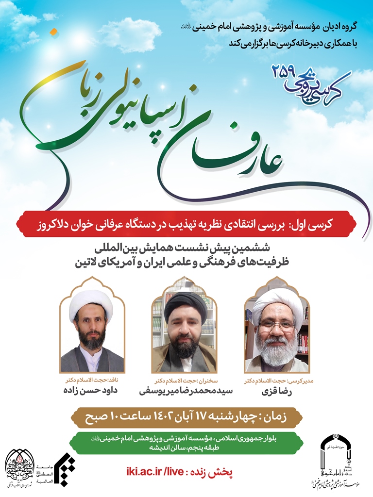 برگزاری کرسی ترویجی با موضوع عارفان اسپانیولی زبان؛ بررسی انتقادی نظریه تهذیب در دستگاه عرفانی‌خوان دلاکروز