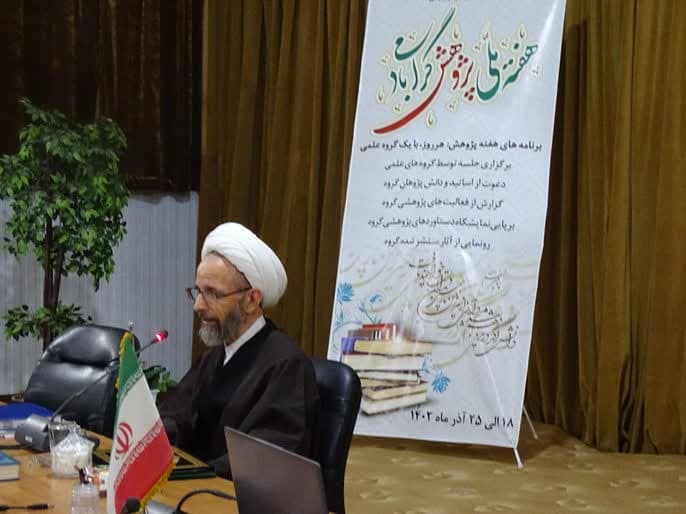 در ادامه این مراسم دكتر خواص به ضرورت پژوهش و اهمیت روش تحقیق برای دانش پژوهان پرداخت و بر آشنایی دانش پژوهان بر منابع مطالعاتی ادیان تاكید كرد و اقدام گروه ادیان را برای برگزاری كارگاه عملی با منابع كتابخانی را مورد تمجید قرار داد.
