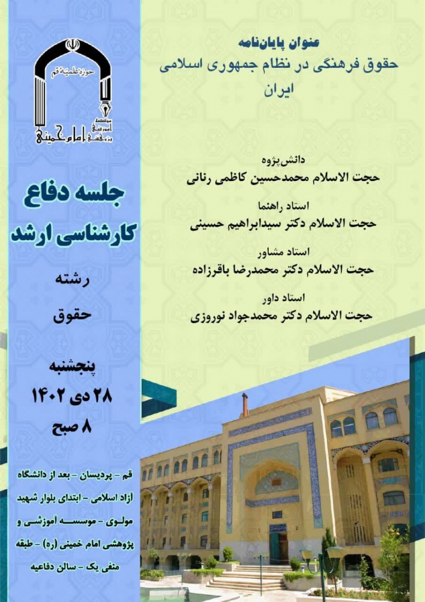 جلسه دفاع پایان نامه با موضوع حقوق فرهنگی در نظام جمهوری اسلامی ایران