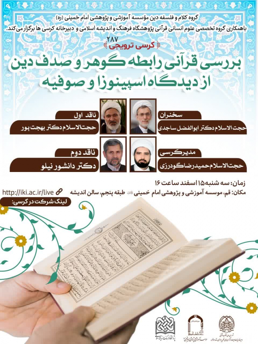 برگزاری کرسی ترویجی با موضوع بررسی قرآنی رابطه گوهر و صدف دین از دیدگاه اسپینوزا و صوفیه
