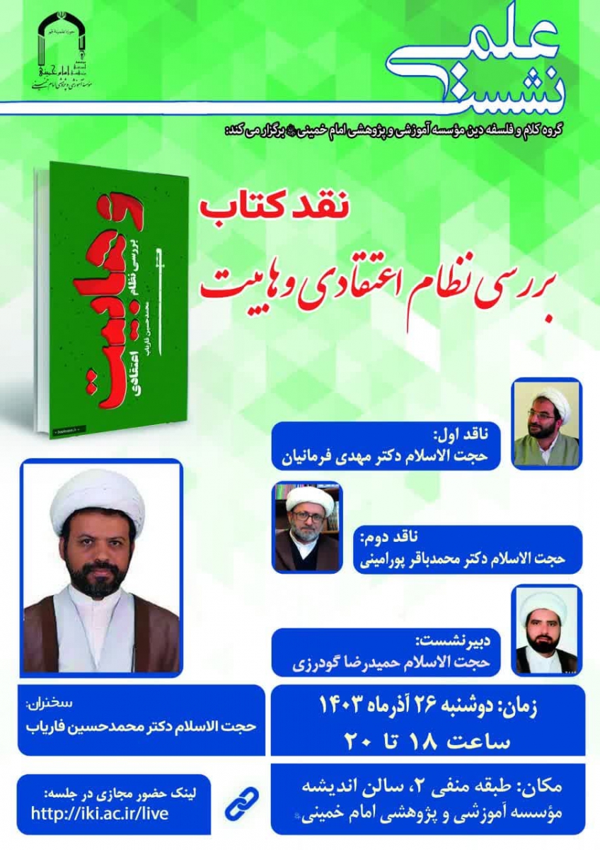 گروه کلام و فلسفه مؤسسه آموزشی و پژوهشی امام خمینی ره برگزار میکند: نشست علمی نقد کتاب بررسی نظام اعتقادی وهابیت