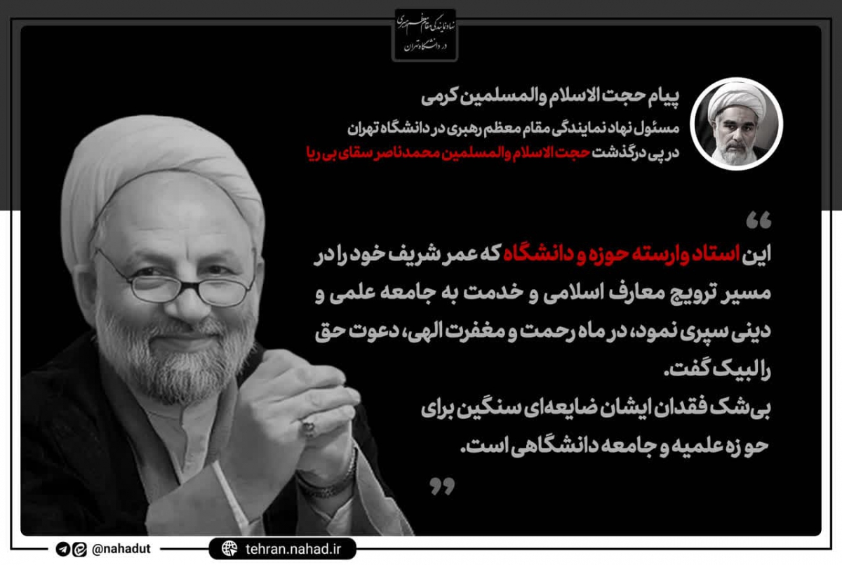 پیام مسئول نهاد نمایندگی مقام معظم رهبری در دانشگاه تهران در پی درگذشت حجت الاسلام والمسلمین دکتر محمد ناصر سقای بی ریا
