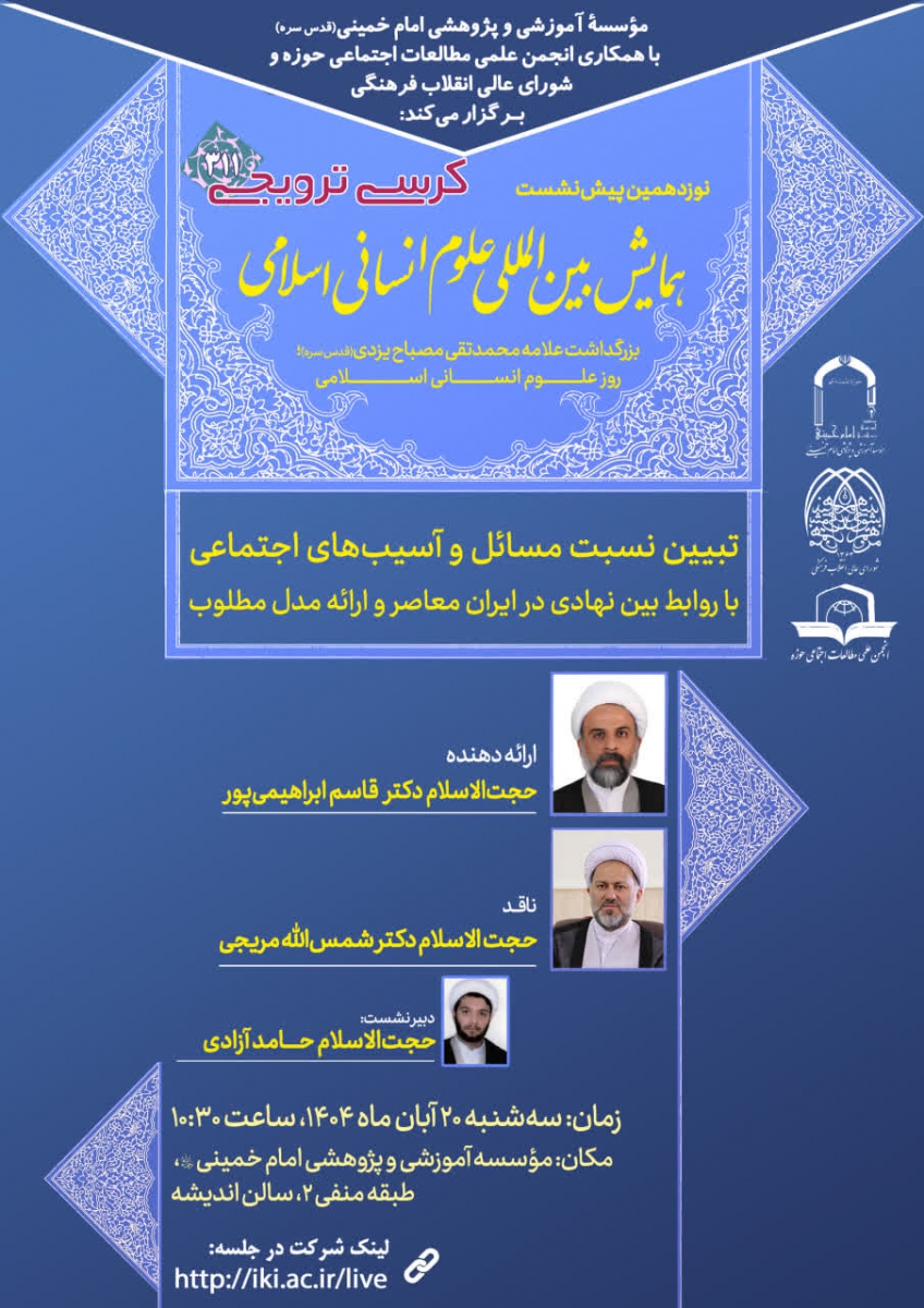 کرسی ترویجی [۳۱۱]: «تبیین نسبت مسائل و آسیبهای اجتماعی با روابط بین نهادی در ایران معاصر و ارائه مدل مطلوب»