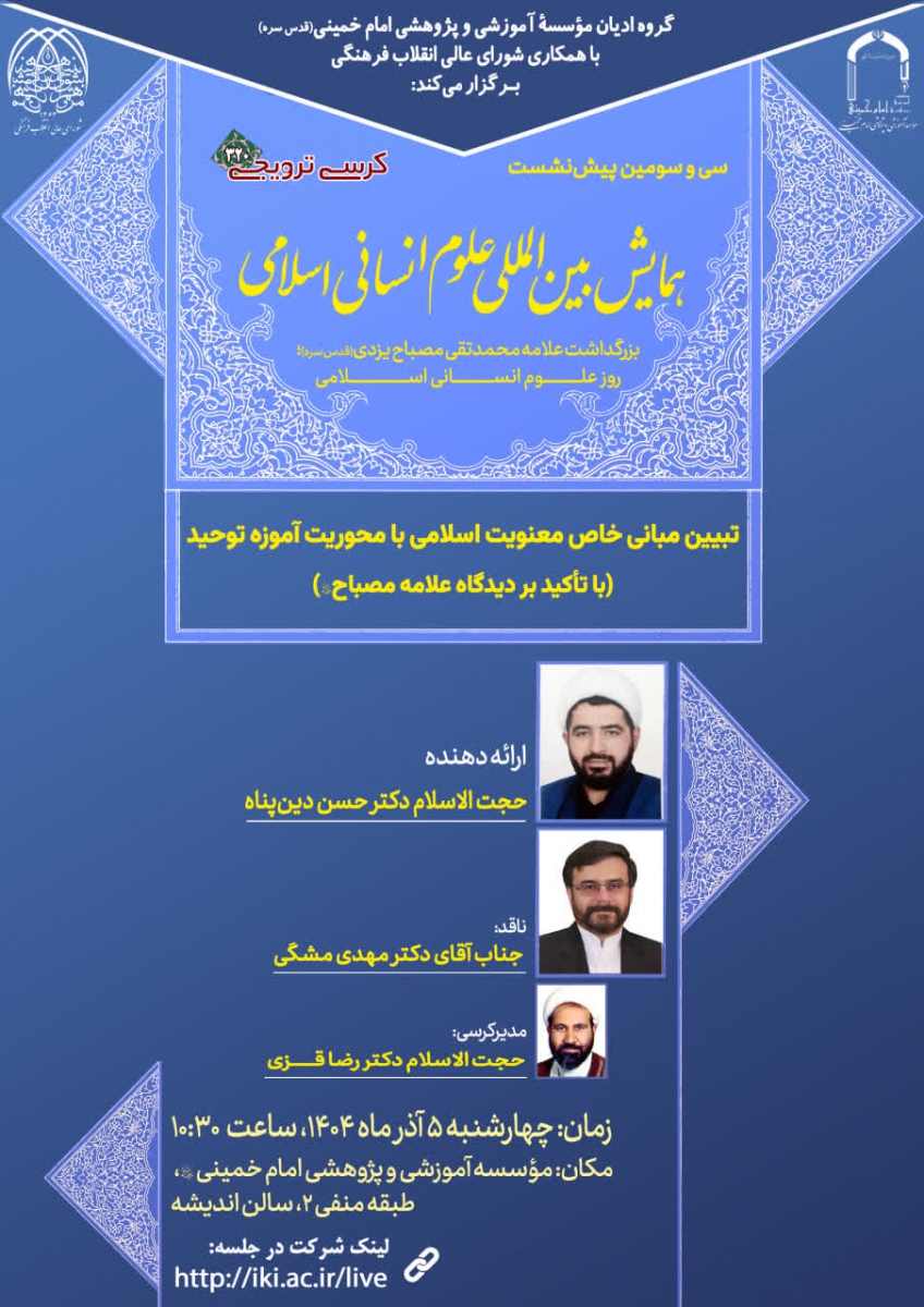 گروه ادیان مؤسسه آموزشی و پژوهشی امام خمینی(ره) باهمکاری شورای عالی انقلاب فرهنگی برگزار میکنند.
