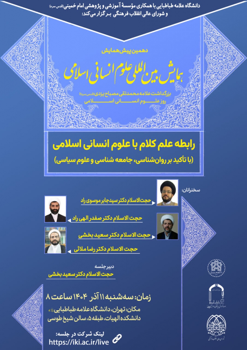 تهران، دانشگاه علامه طباطبایی ره، دانشکده الهیات، طبقه ۵، سالن شیخ طوسی
