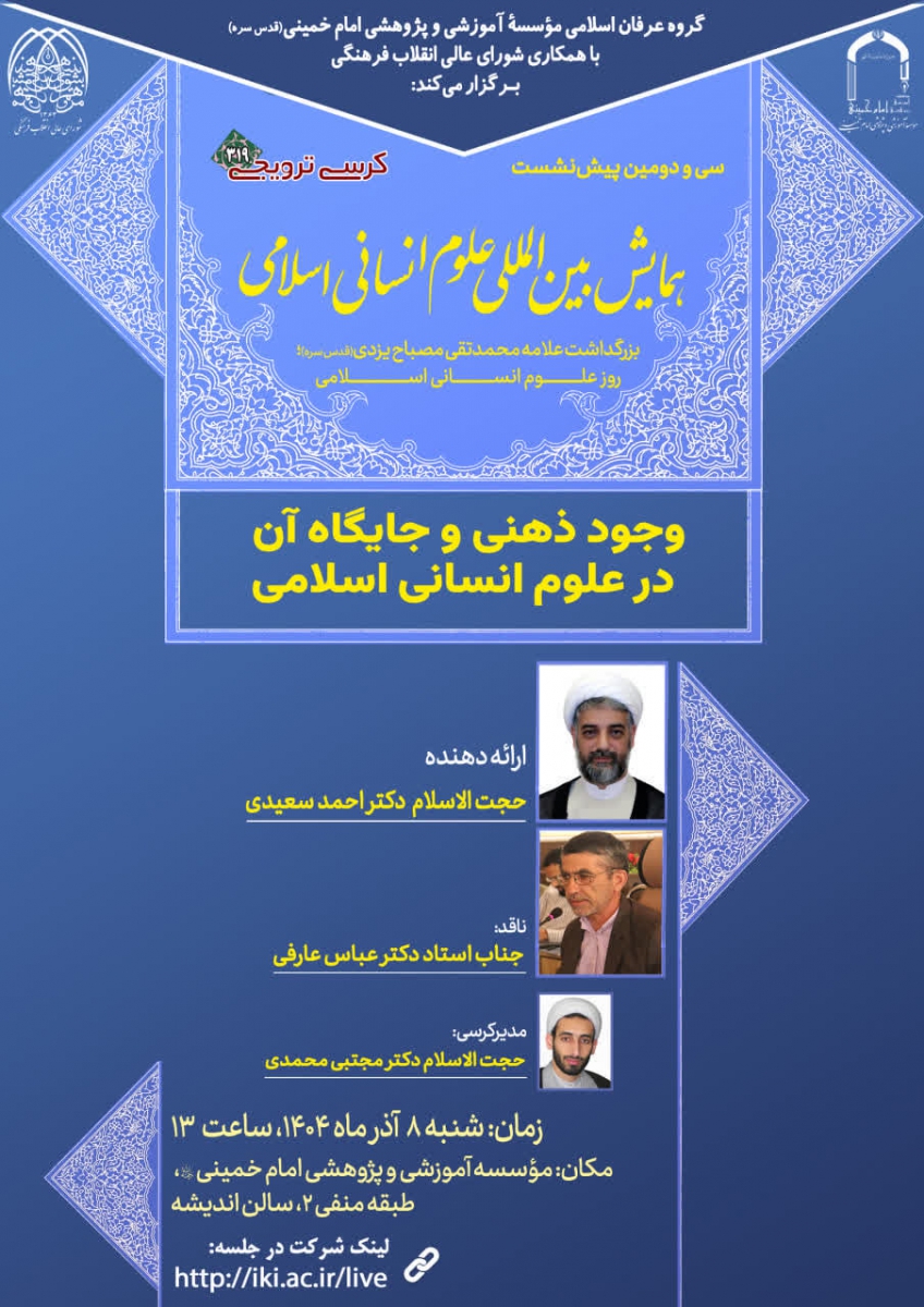 گروه عرفان اسلامی مؤسسه آموزشی و پژوهشی امام خمینی(ره) با همکاری شورای عالی انقلاب فرهنگی برگزار میکنند: