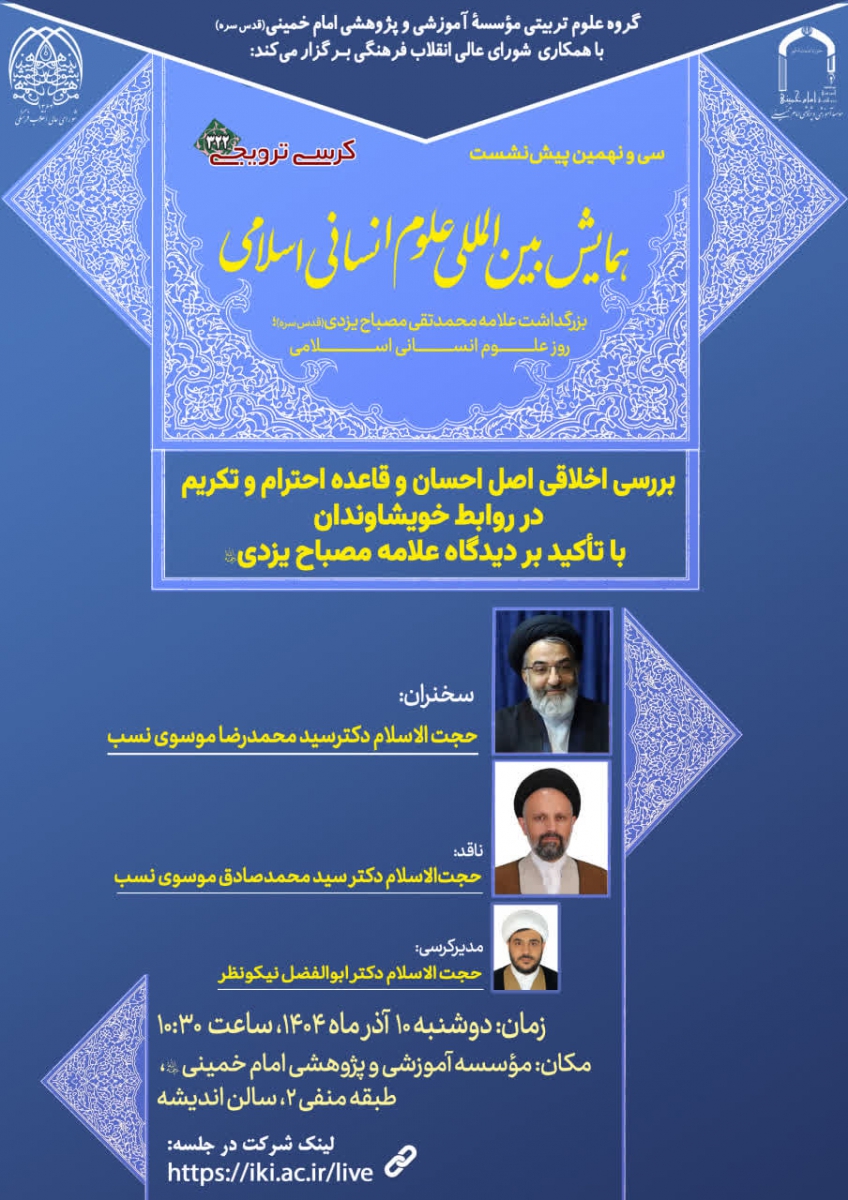 کرسی ترویجی [۳۲۲] « بررسی اخلاقی اصل احسان و قاعده احترام و تکریم در روابط خویشاوندان با تأکید بر دیدگاه علامه مصباح یزدی ره »