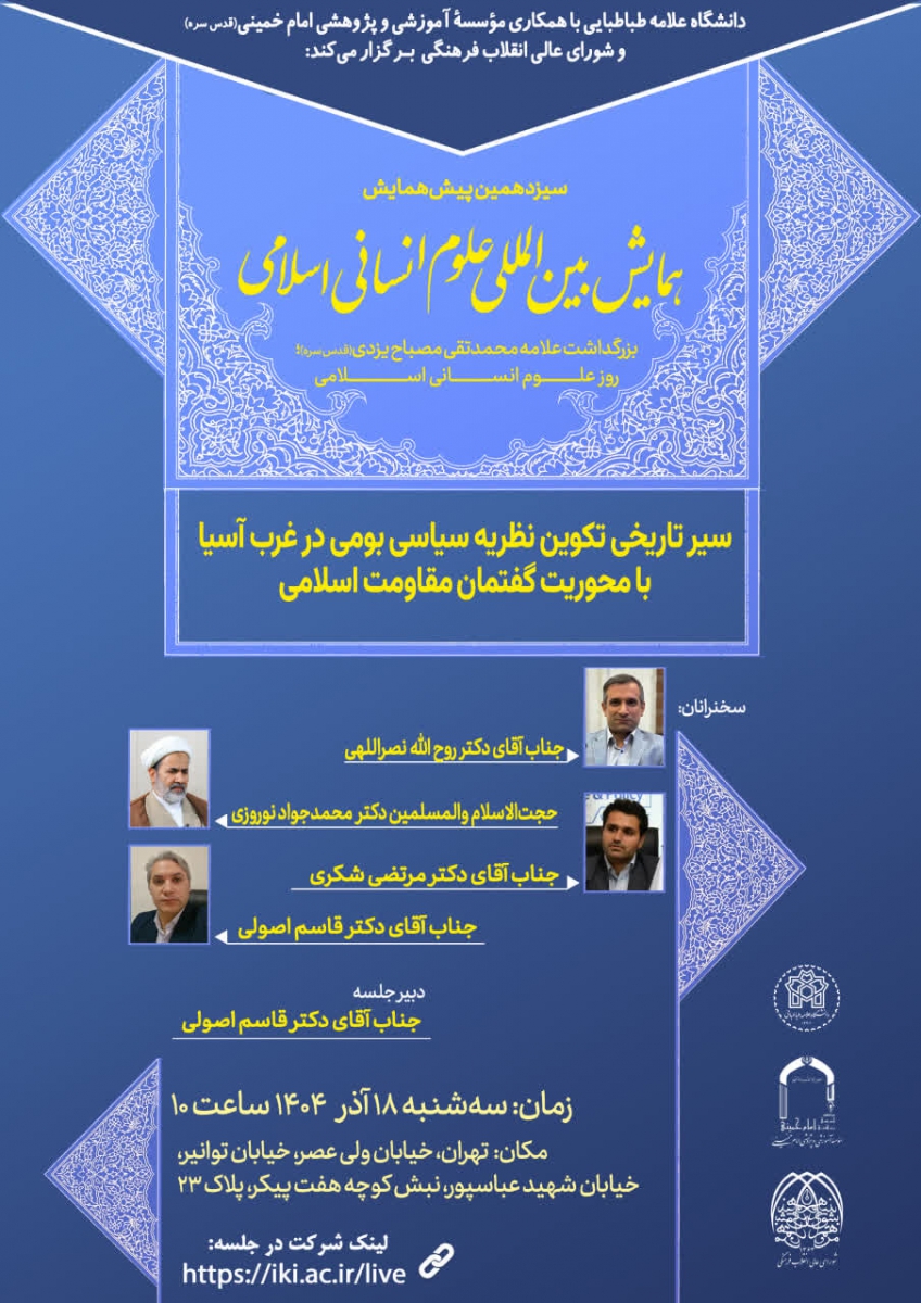دانشگاه علامه طباطبایی باهمکاری مؤسسه آموزشی و پژوهشی امام خمینی(ره) و شورای عالی انقلاب فرهنگی برگزار میکنند: