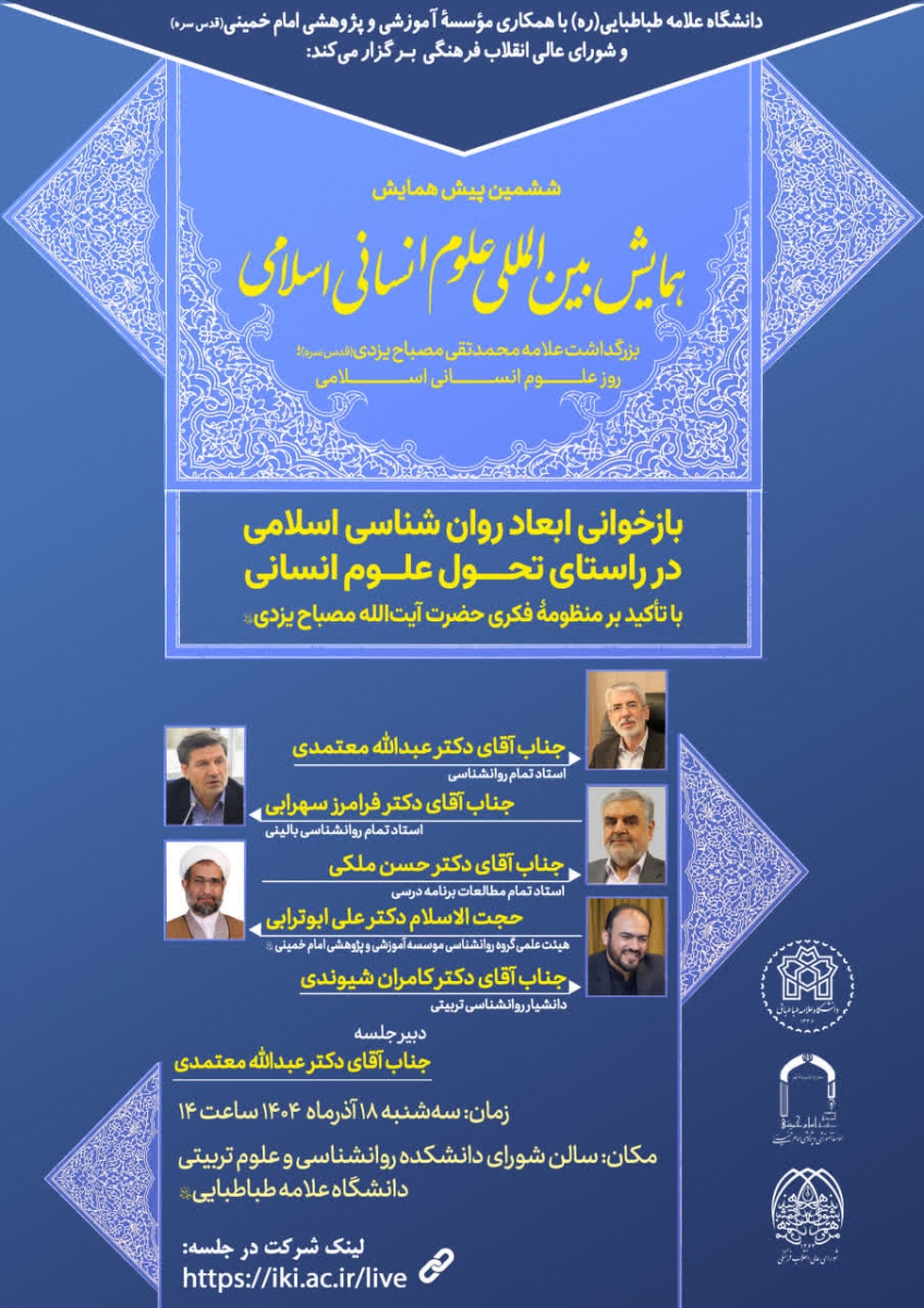 دانشگاه علامه طباطبایی ره با همکاری مؤسسه آموزشی و پژوهشی امام خمینی(ره) و شورای عالی انقلاب فرهنگی برگزار میکنند: