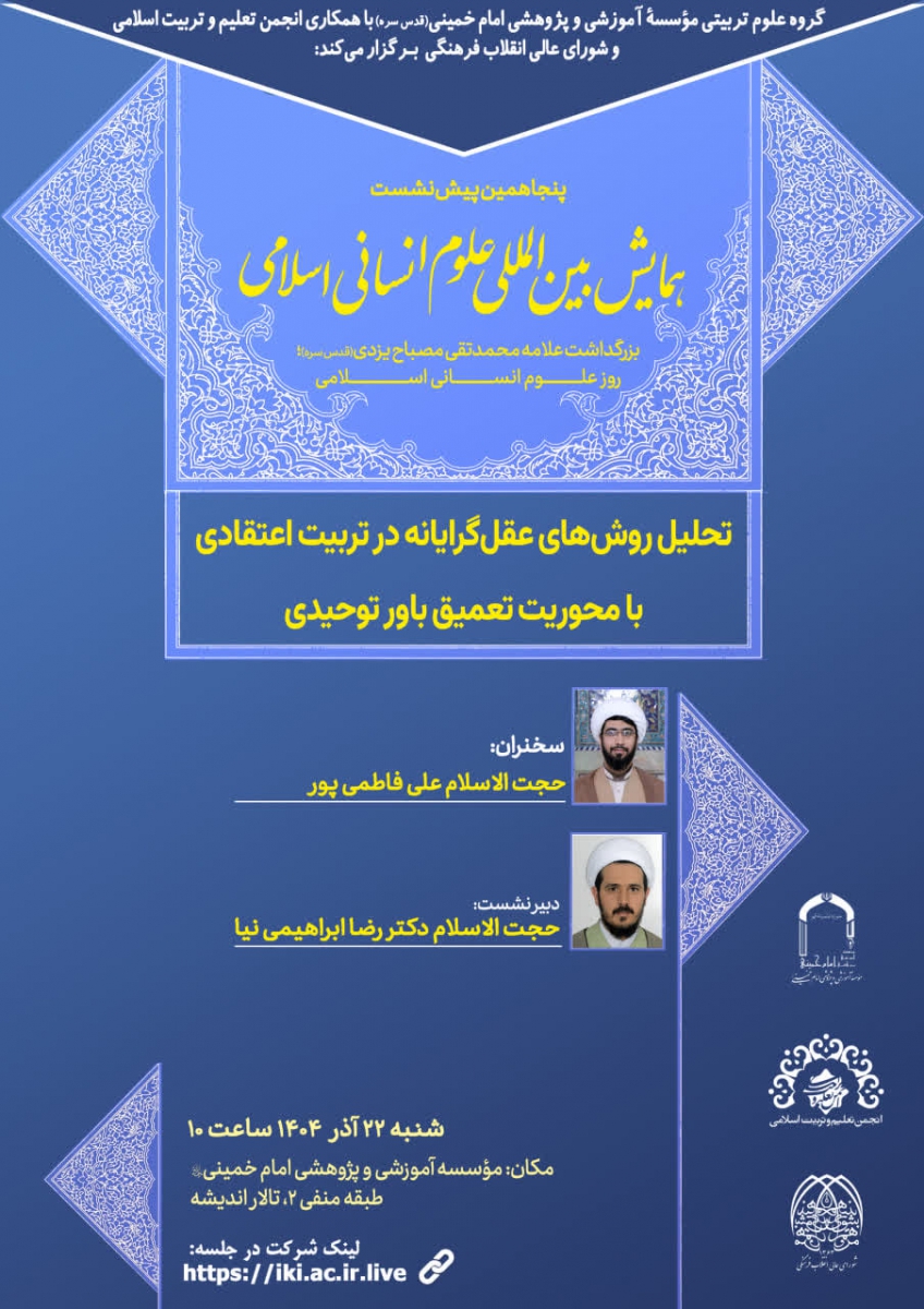 گروه علوم تربیتی مؤسسه آموزشی و پژوهشی امام خمینی(ره) با همکاری انجمن تعلیم و تربیت اسلامی و شورای عالی انقلاب فرهنگی برگزار میکنند: