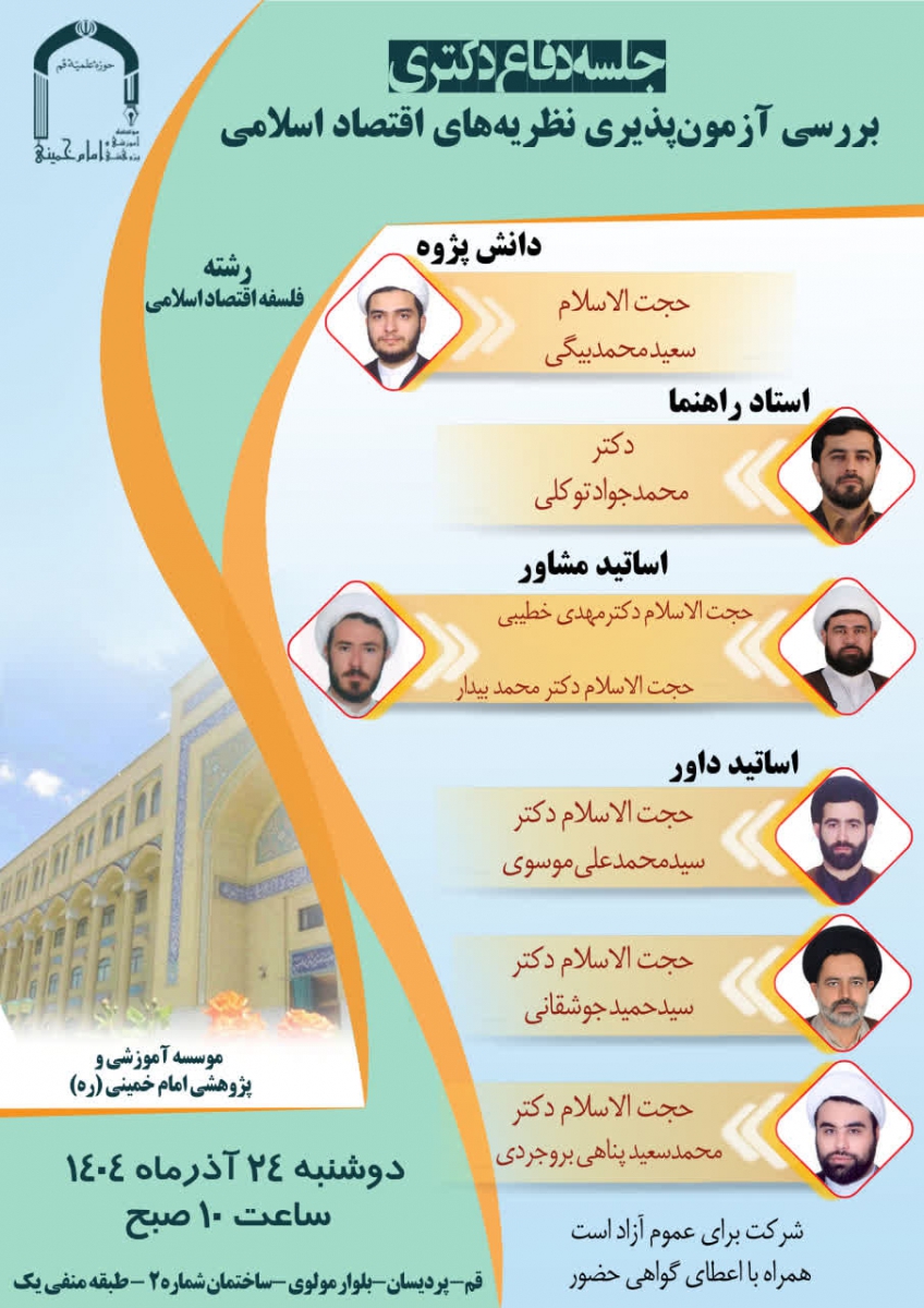 مکان: قم، پرديسان - بلوار مولوی - ساختمان شماره ۲ مؤسسه آموزشی و پژوهشی امام خمينی (ره) - طبقه منفی یک، سالن جلسات دفاع