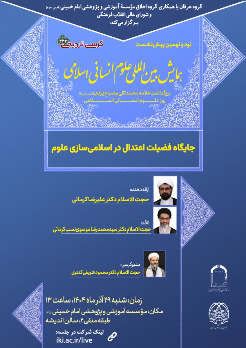گروه عرفان با همکاری گروه اخلاق مؤسسه آموزشی و پژوهشی امام خمینی(ره) و شورای عالی انقلاب فرهنگی برگزار میکنند: