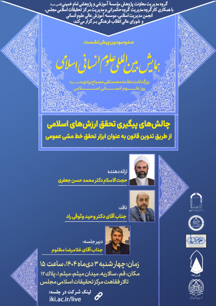 عنوان: «چالشهای پیگیری تحقق ارزشهای اسلامی از طریق تدوین قانون به عنوان ابزار تحقق خط مشی عمومی»