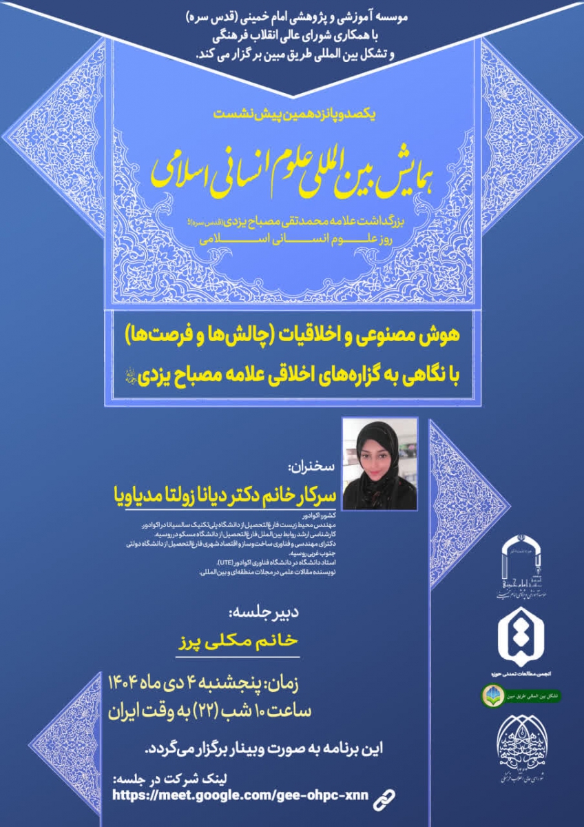 عنوان: «هوش مصنوعی و اخلاقیات (چالشها و فرصتها) با نگاه به گزارههای اخلاقی علامه مصباح یزدی ره»