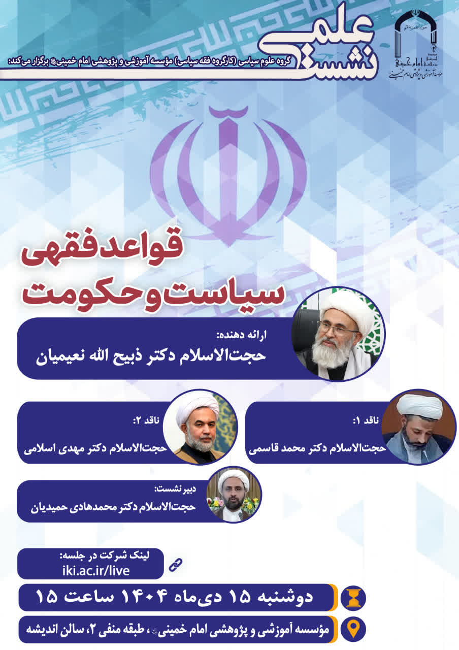گروه علوم سیاسی (کارگروه فقه سیاسی) مؤسسه آموزشی و پژوهشی امام خمینی (ره) برگزار میکند: