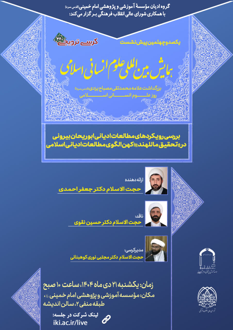 گروه ادیان مؤسسه آموزشی و پژوهشی امام خـمینی (قدس سره) با همکاری شورای عالی انقلاب فرهنگی برگزار می کند: