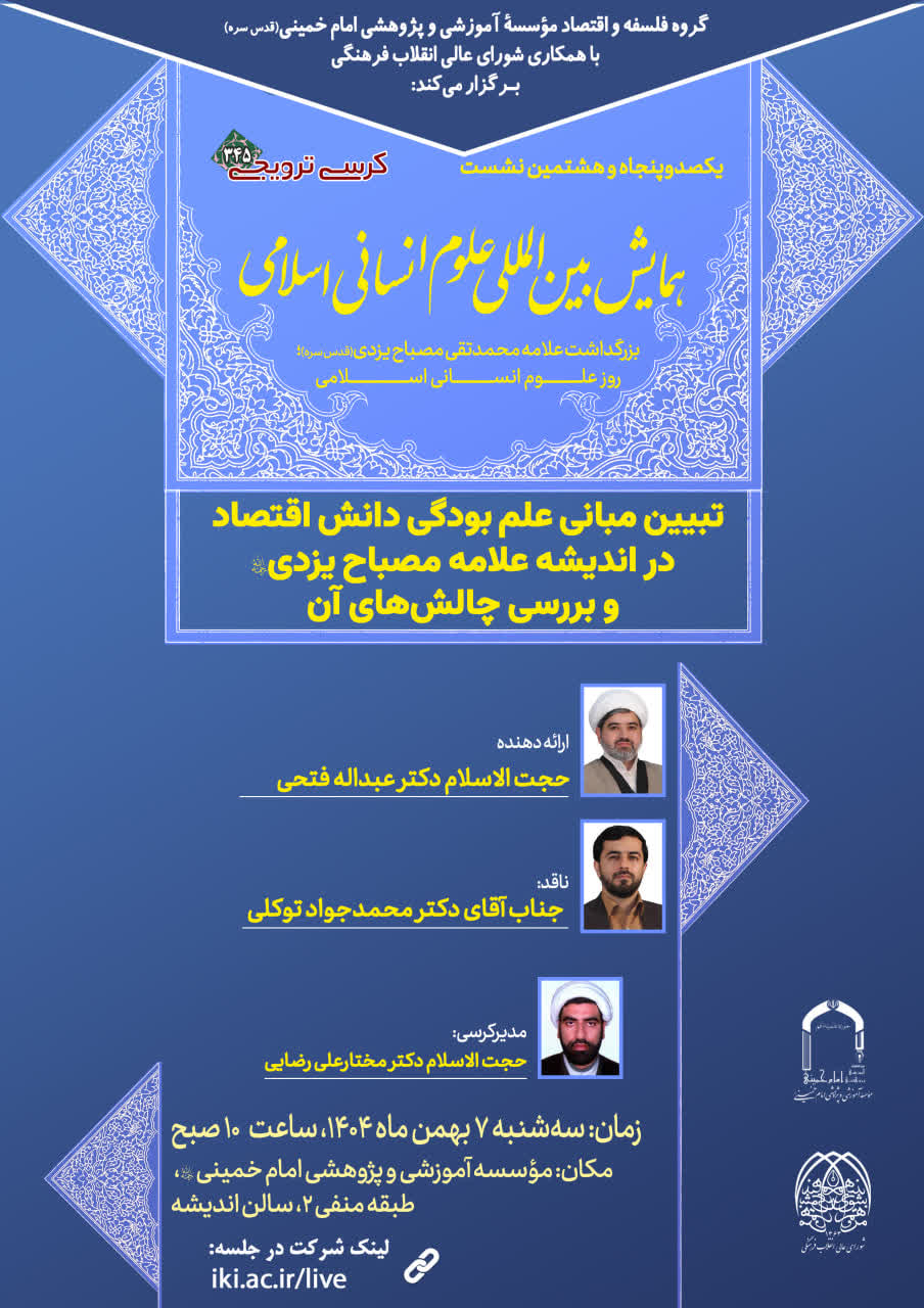 گروه فلسفه و اقتصاد مؤسسه آموزشی و پژوهشی امام خـمینی (قدس سره) با همکاری شورای عالی انقلاب فرهنگی برگزار می کند: